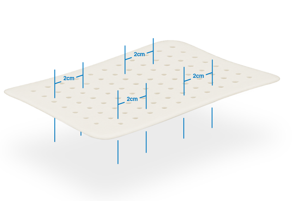 Cortiva® 1mm Perforated Tailored and Cortiva® 1mm Perforated allograft dermis grafts feature a consistent, precision-engineered perforation pattern of 5mm hexagonal openings, enabling multidirectional expansion for exceptional drape, flexibility, and conformability to contoured and complex surfaces.1,2,3,4,*,† This open geometry was shown to support effective fluid exchange while delivering predictable handling in a wide range of surgical applications.1