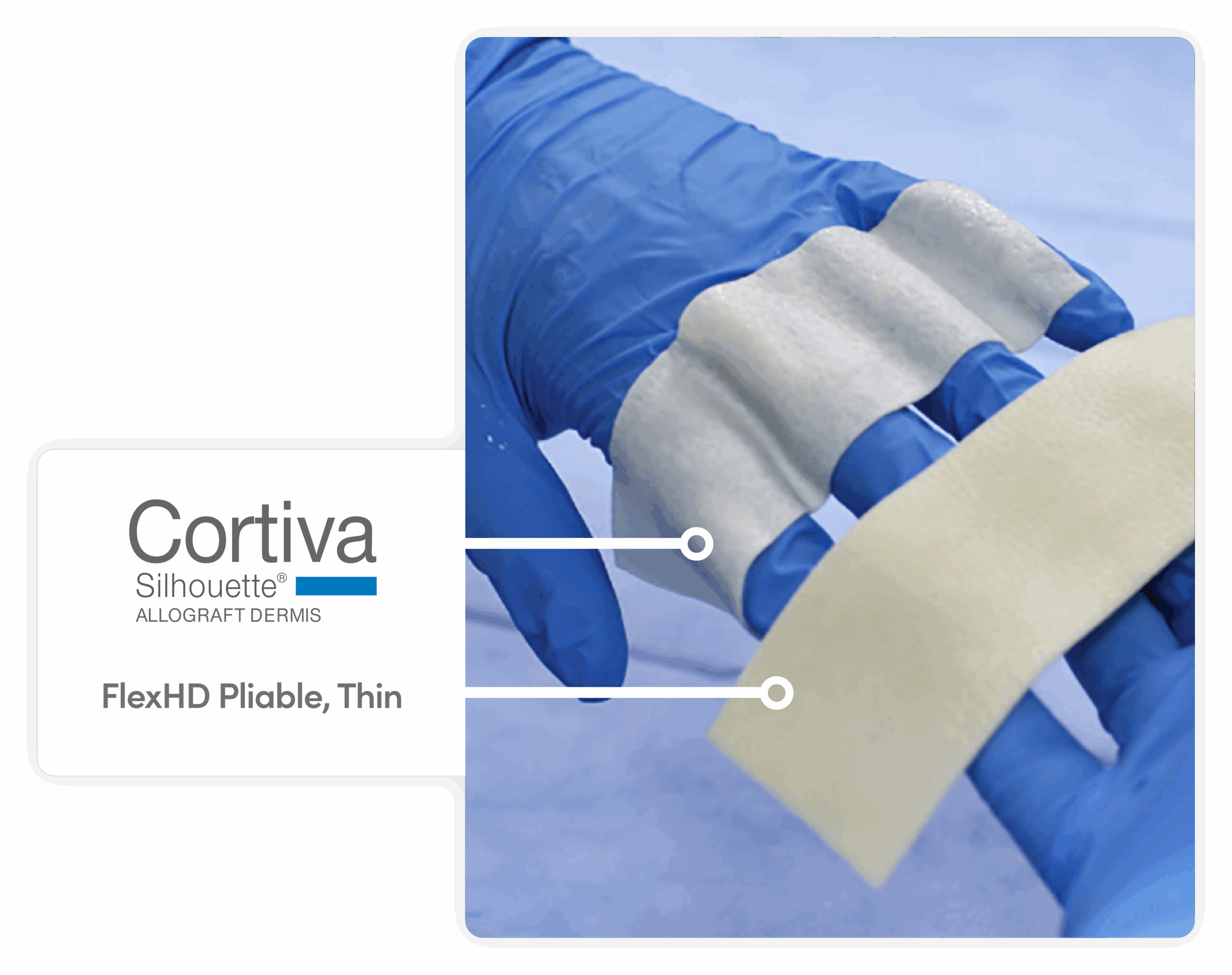 Cut exclusively from the middle of the dermis, and with the thinnest dimensions available, Cortiva Silhouette® allograft dermis is one of the most pliable ADMs on the market.1